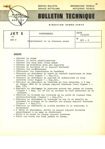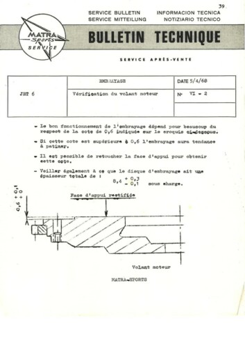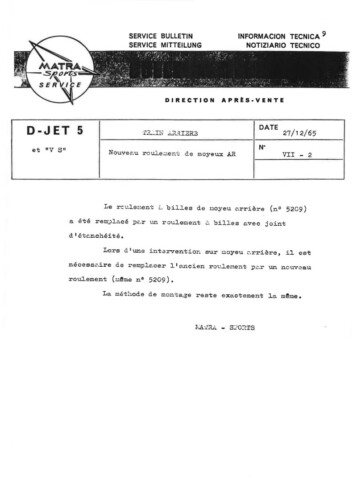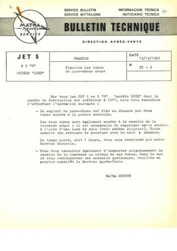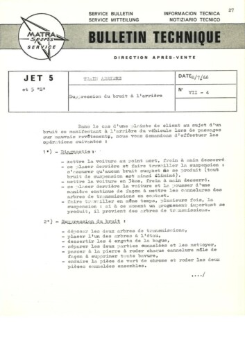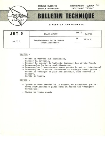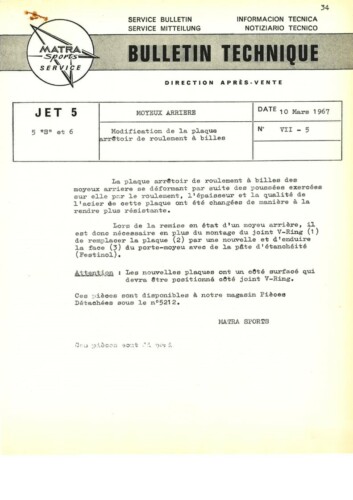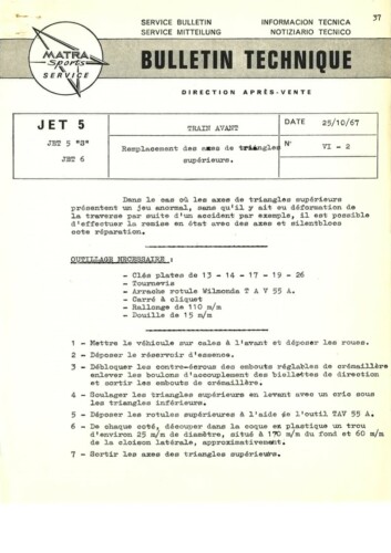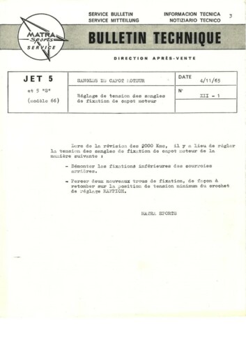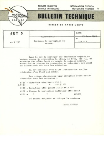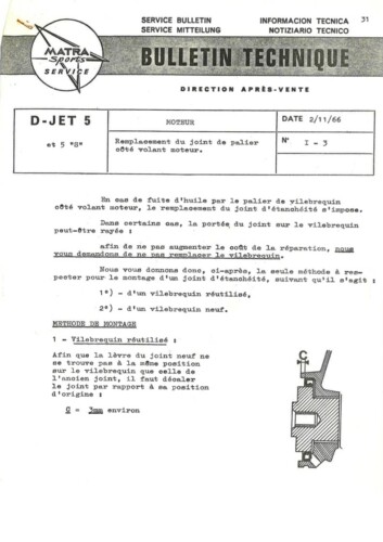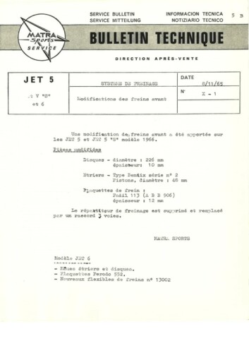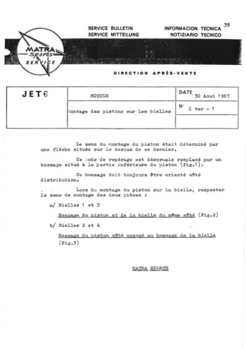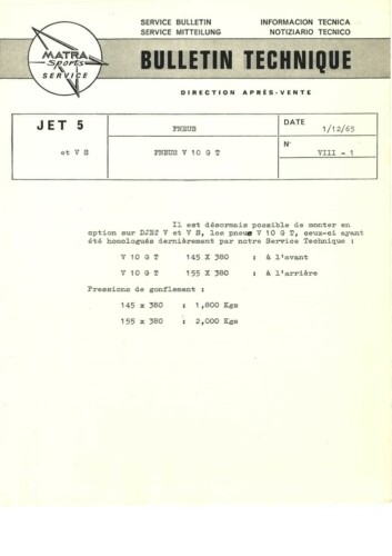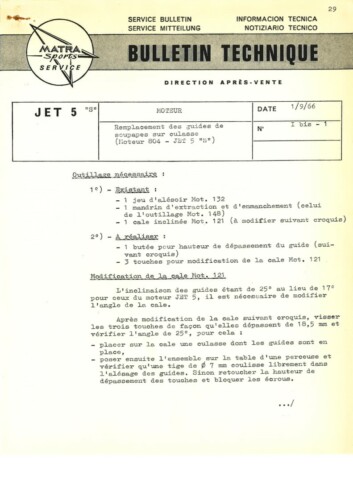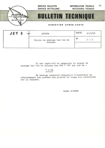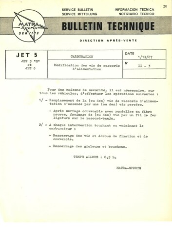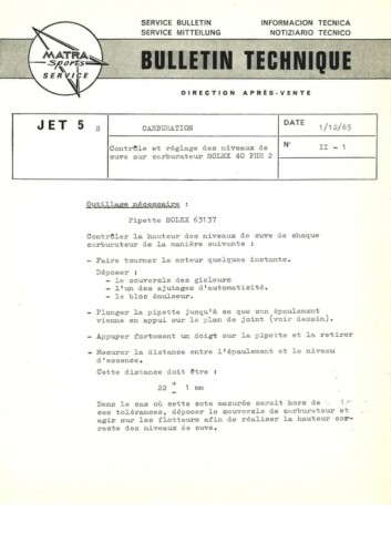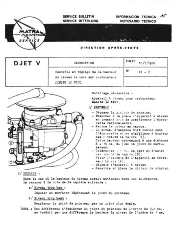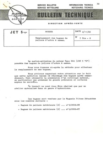 Bulletins techniques Matra Djet publiées par le Service Après Vente Matra
