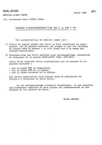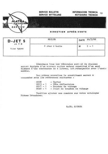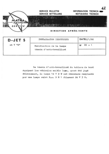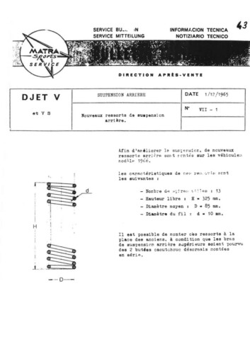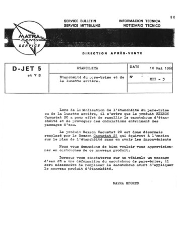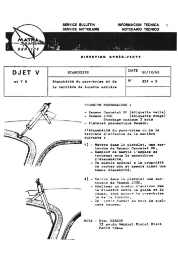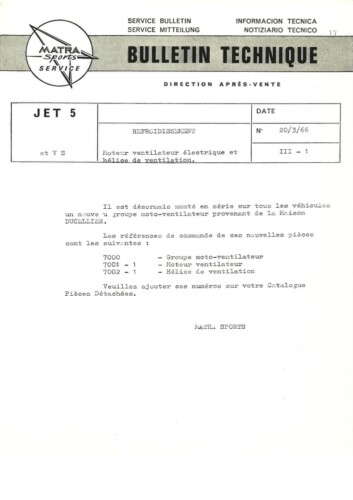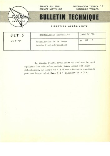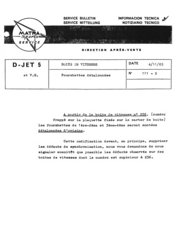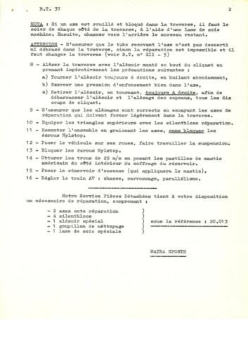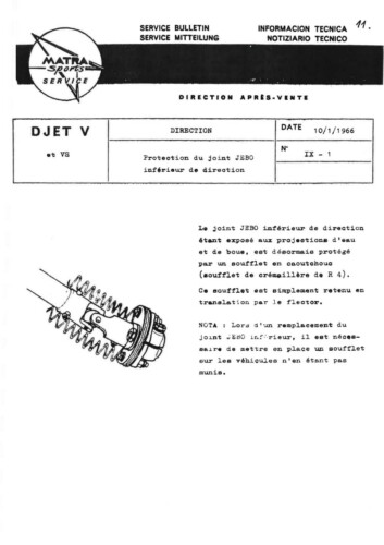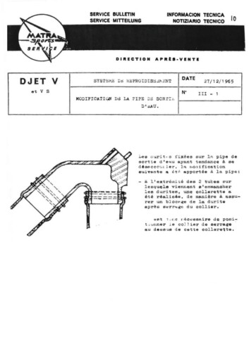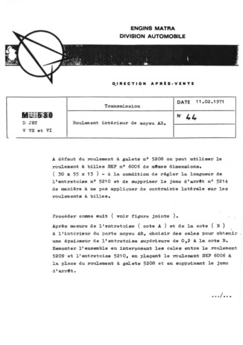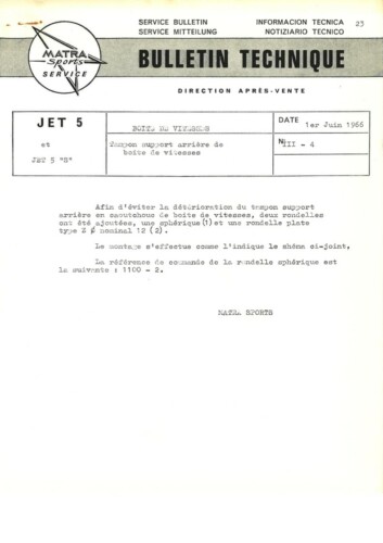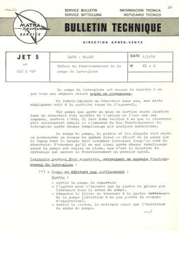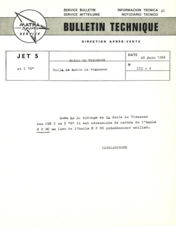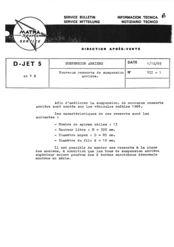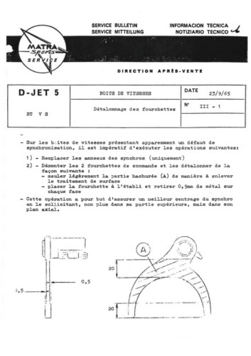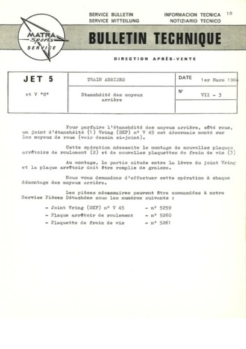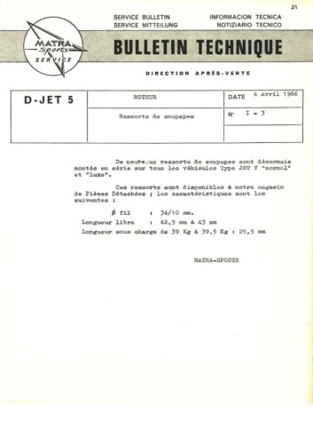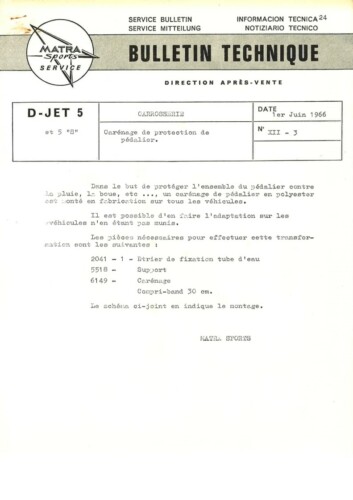 Bulletins techniques Matra Djet publiées par le Service Après Vente Matra