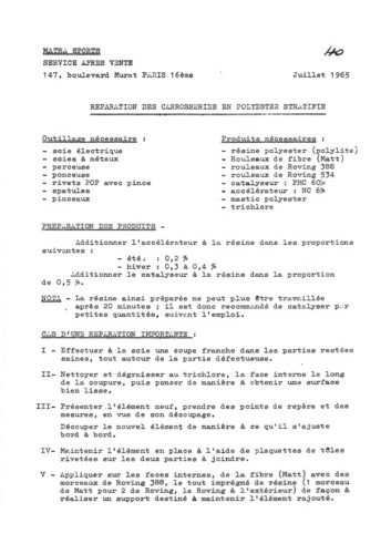 - 40 Carrosserie : Réparation sur Polyester stratifié
